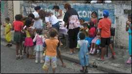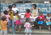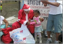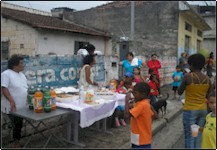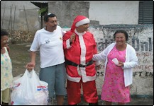 Abaixo fotos da Festa de Fim de ano no dia. A alguns anos realizamos a festa de Natal, onde procuramos além de distribuir presentes, também levar o espírito de solidariedade e companheirismo. Em uma mesa comunitária feita com a ajuda dos pais da comunidade, servimos salgados e muito refrigerante para as crianças, o que importa não é a festa e sim o espírito de amor e a alegria das crianças que nos contagia a cada ano. |