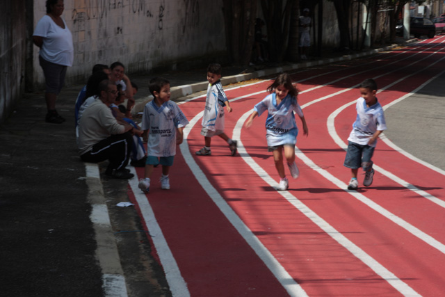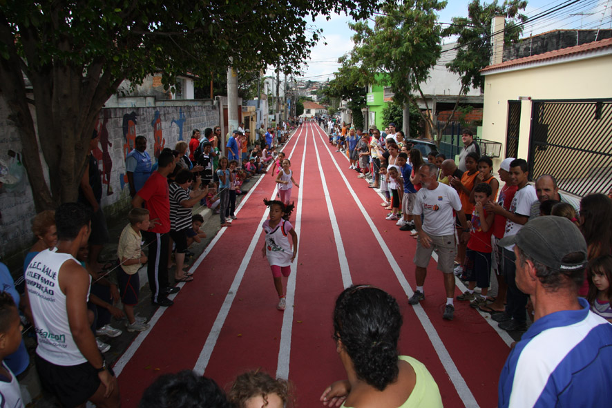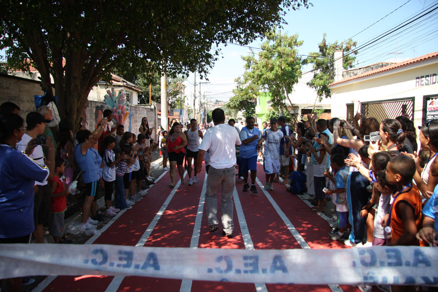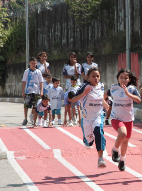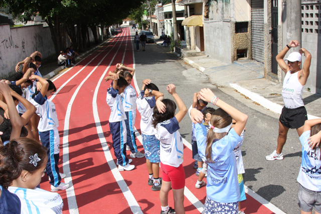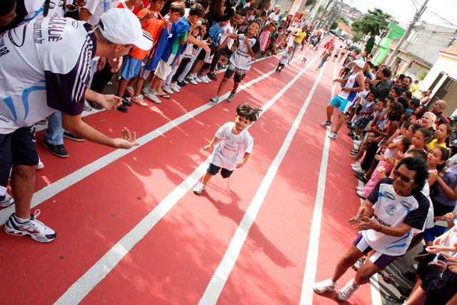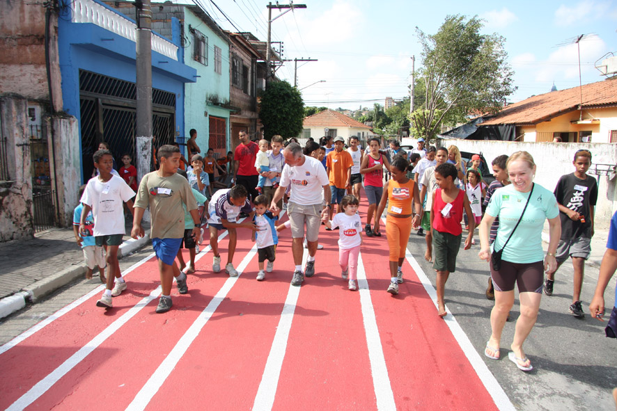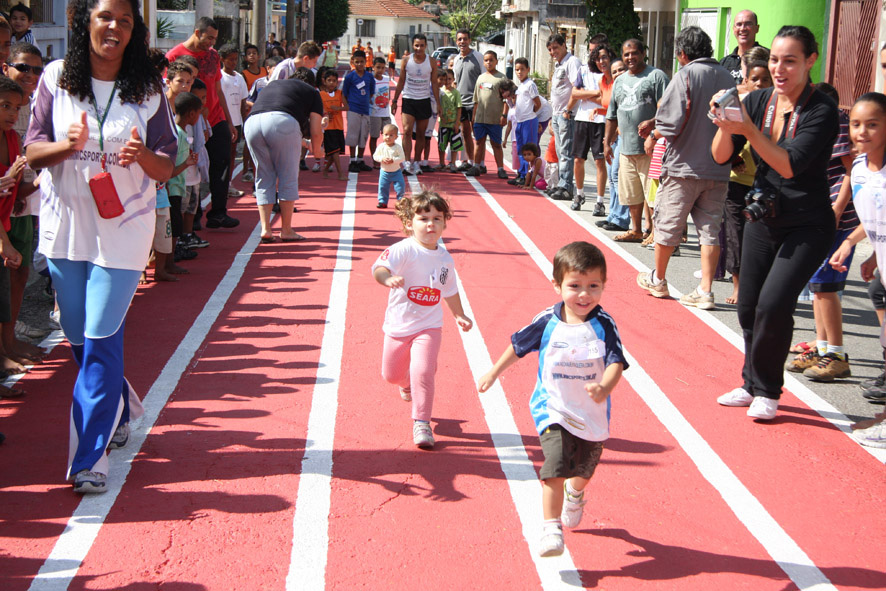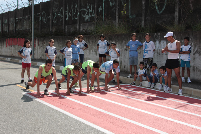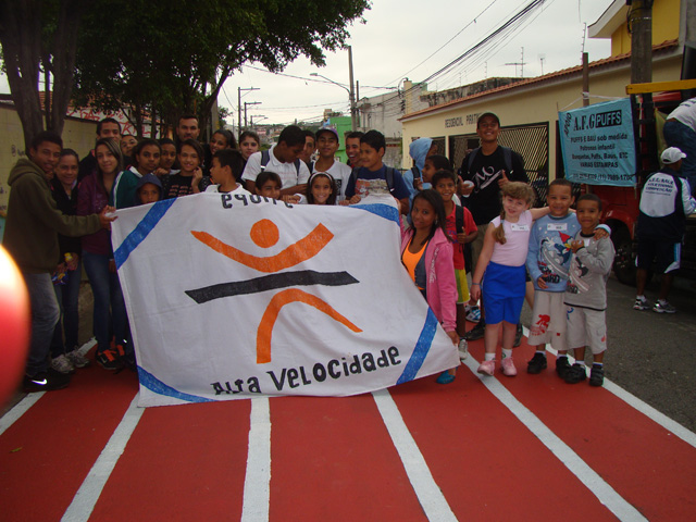 Objetivo - Inclusão social através do esporte com a prática do pedestrianismo Público – Crianças e jovens com idade entre 3 e 15 anos Escola de técnicas para prática do pedestrianismo realizada na Pista Pintada na Rua. As crianças com maior potencial atlético são encaminhadas para programas de rodagem supervisionados. Confirmando o potencial são encaminhadas par clubes federados de atletismo. Para as demais crianças fica o aprendizado das técnicas e disciplina do esporte associadas a melhoria de saúde física e mental.