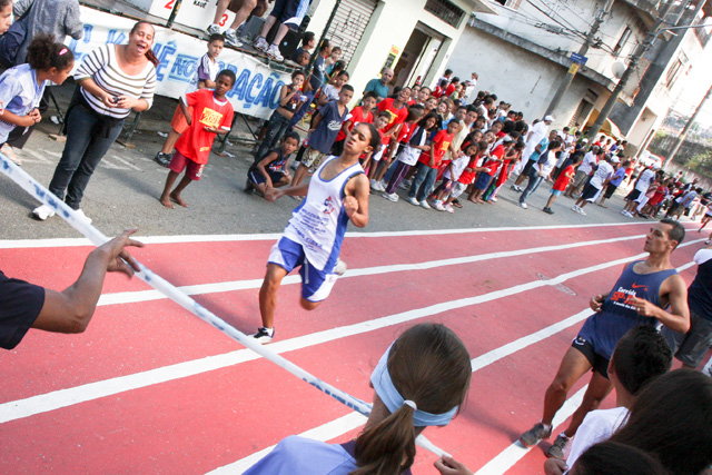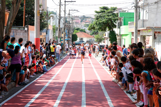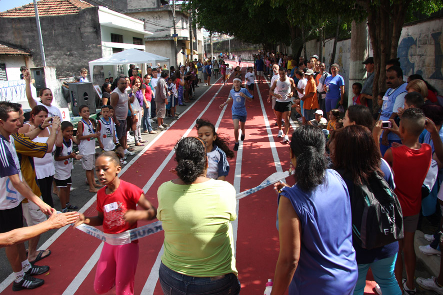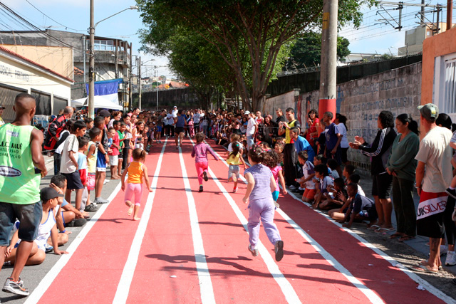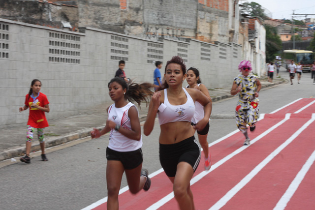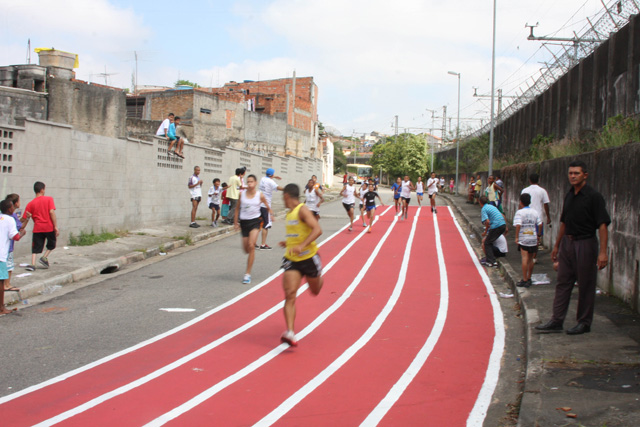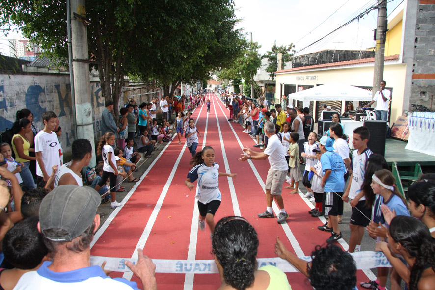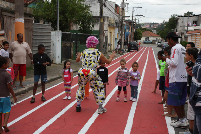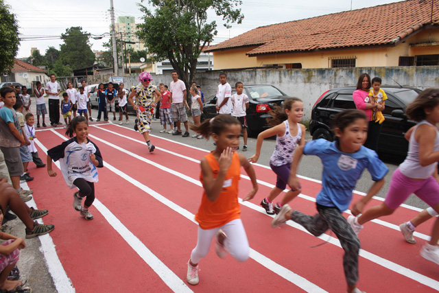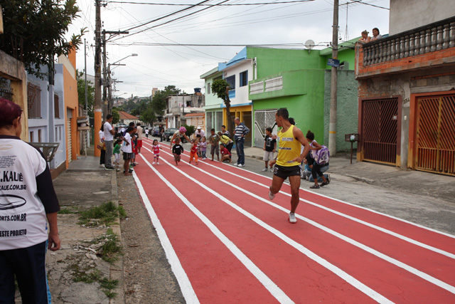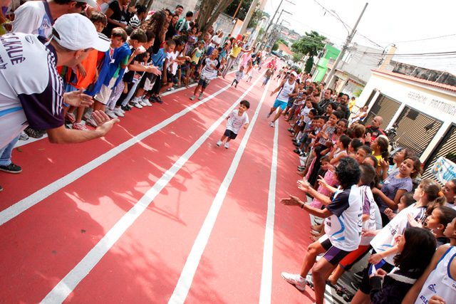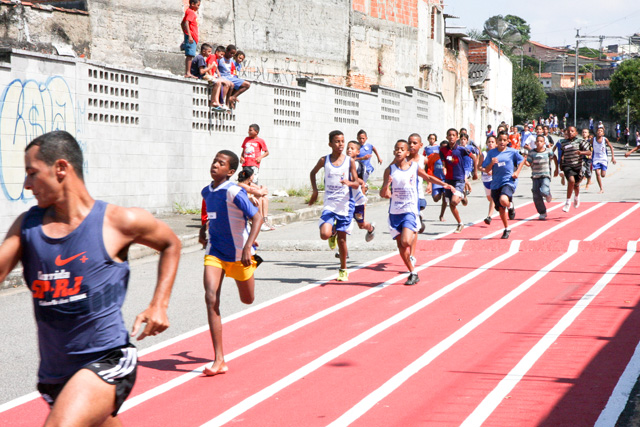 Objetivo - Inclusão social através do esporte com a prática do pedestrianismo Público – Crianças e jovens com idade entre 3 e 15 anos Escola de técnicas para prática do pedestrianismo realizada na Pista Pintada na Rua. As crianças com maior potencial atlético são encaminhadas para programas de rodagem supervisionados. Confirmando o potencial são encaminhadas par clubes federados de atletismo. Para as demais crianças fica o aprendizado das técnicas e disciplina do esporte associadas a melhoria de saúde física e mental.