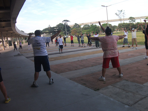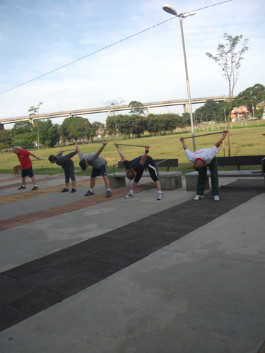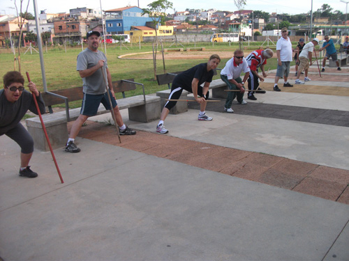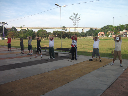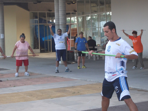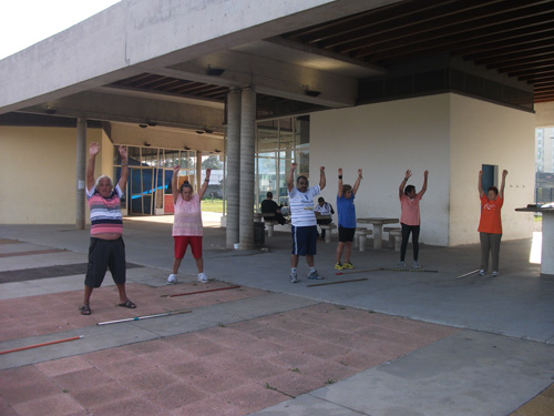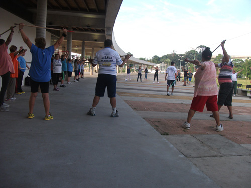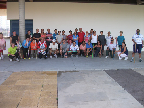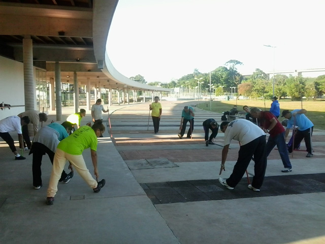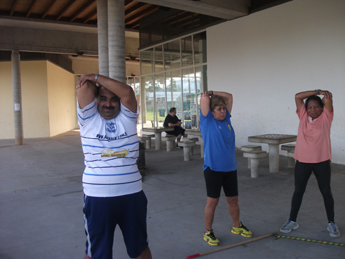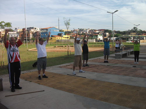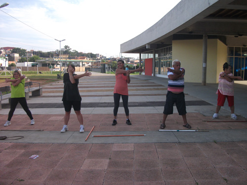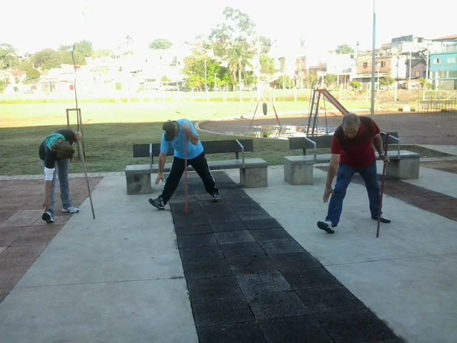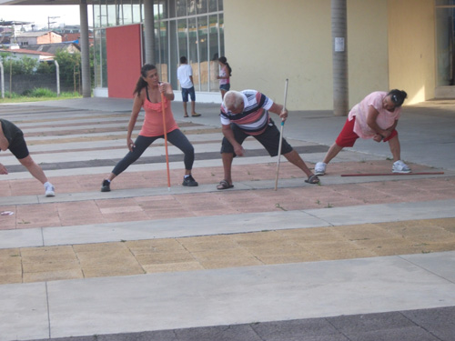 Objetivo – Atividade Física Público – 3ª idade. Combate ao sedentarismo, inclusão da atividade esportiva sem compromisso com auto-rendimento, fazer com que as pessoas desenvolvam o hábito de caminhar, alongar e exercitar-se. O exercício físico para a 3ª idade trás benefícios como controle da diabete e pressão arterial.